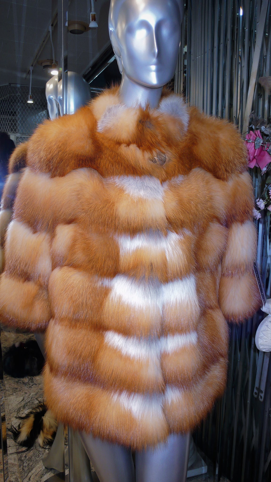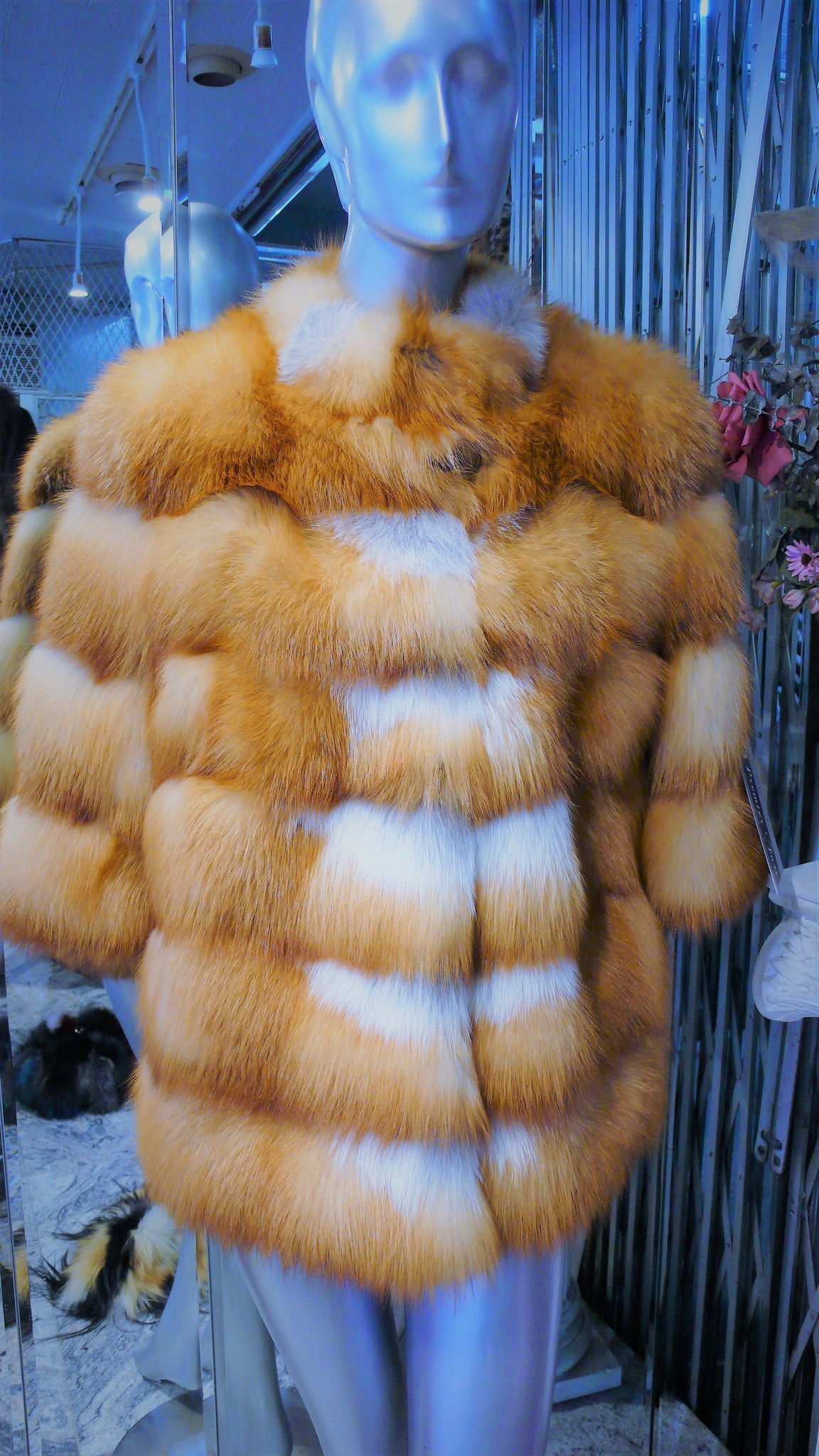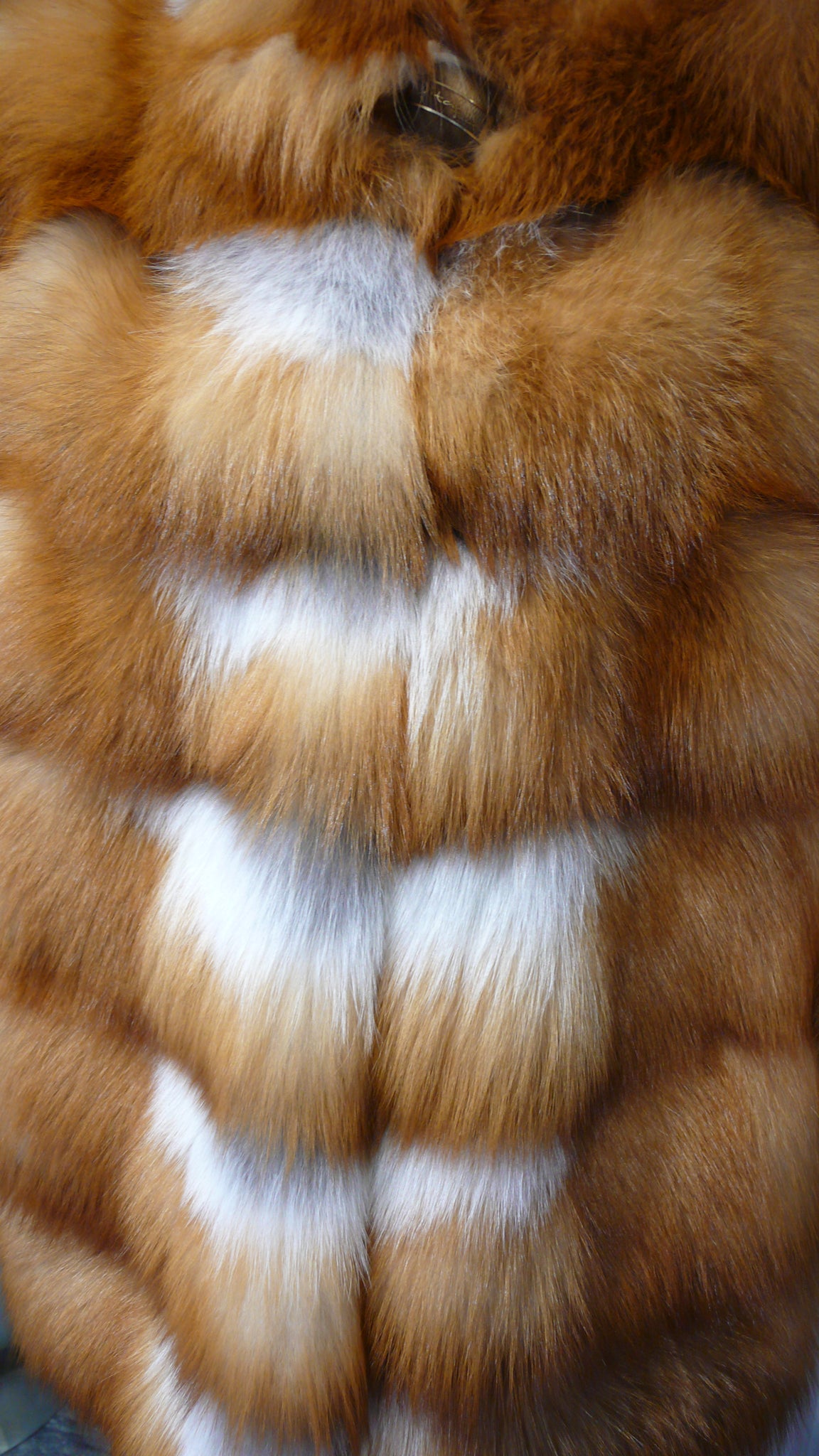 Bright and lustrous Natural Shade on this Red Fox Fur Stroller coat. Superior quality as there is depth to the fur. Deep rich shade of natural red fox fur color.