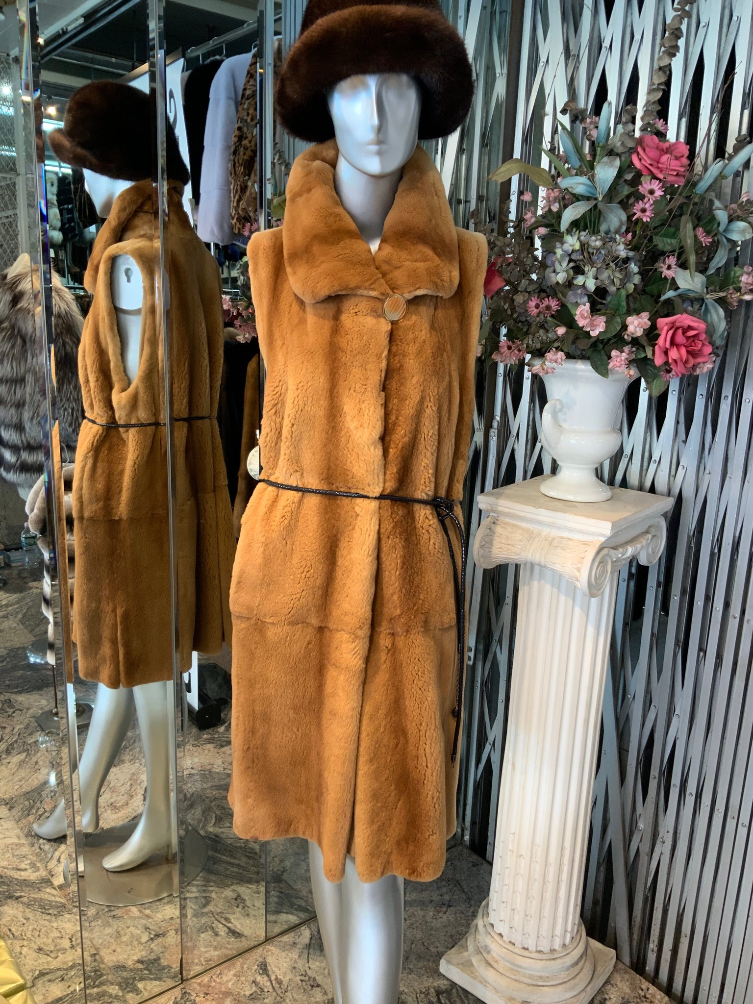 Light Whiskey Gold shade, sheared mink stroller vest. Full mink pelts. Top quality.