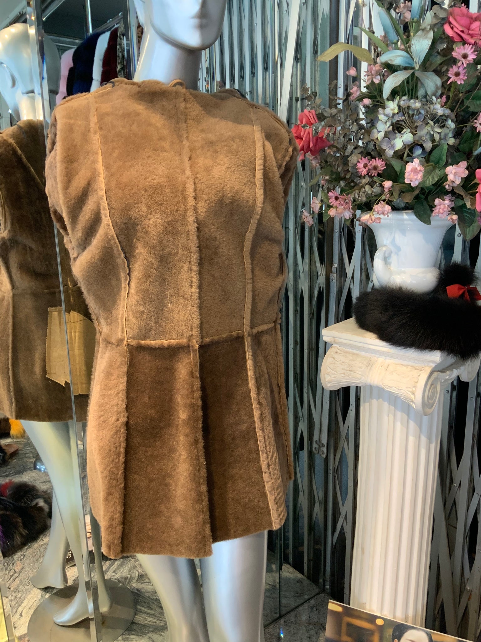 Inside is the fur part of the skin in flat texture. Outside is the hide part in a suede finish with textured pattern.