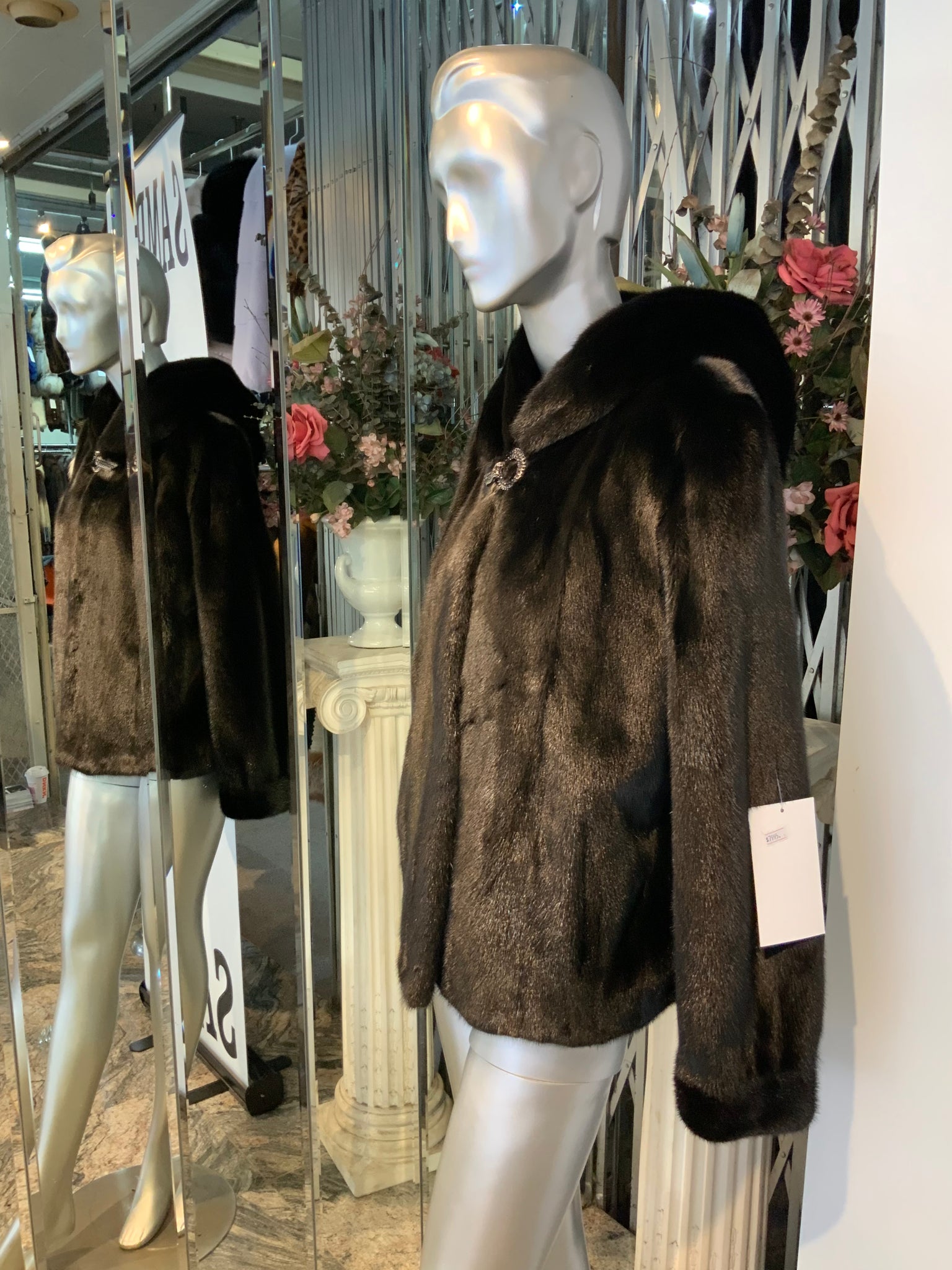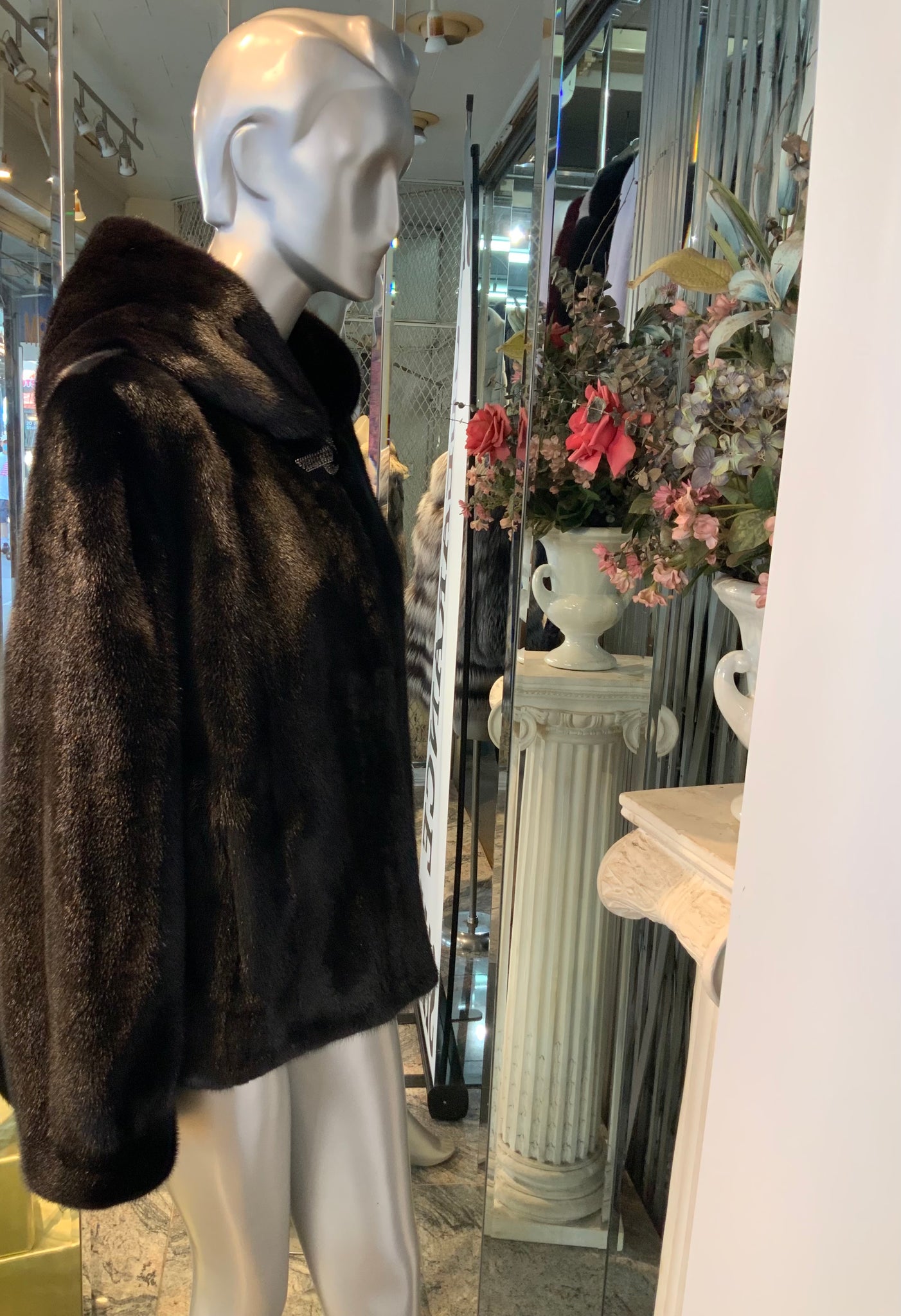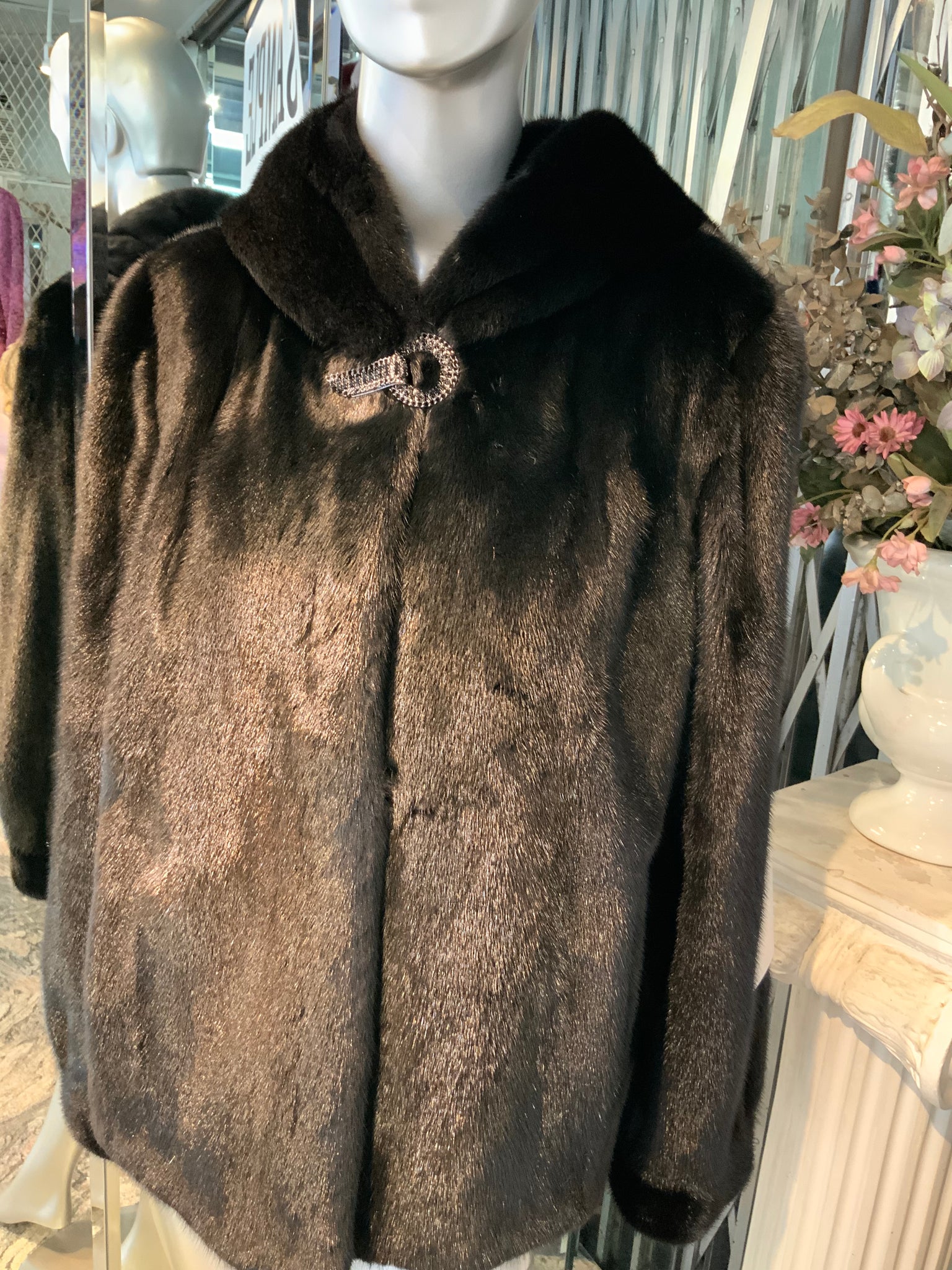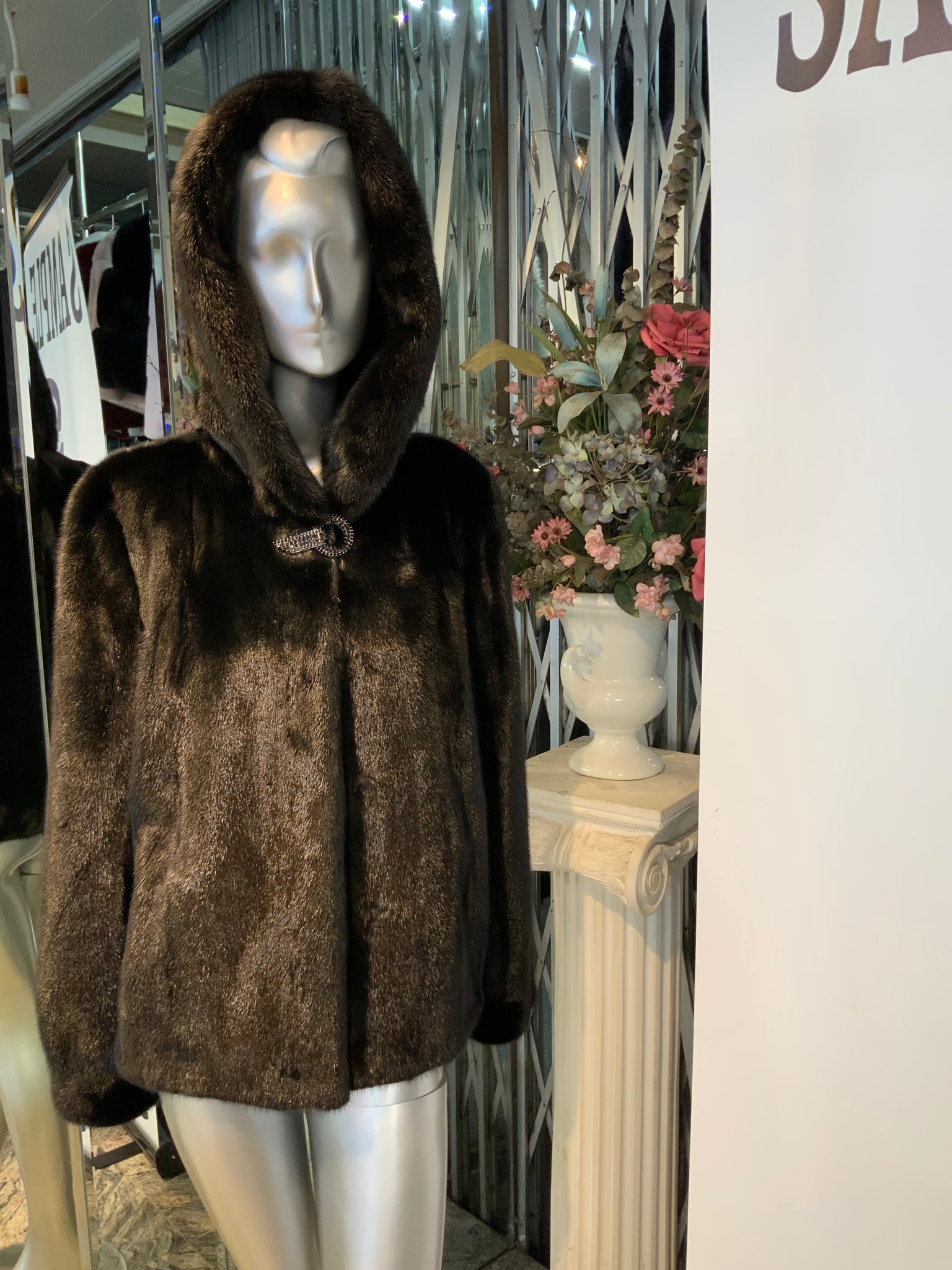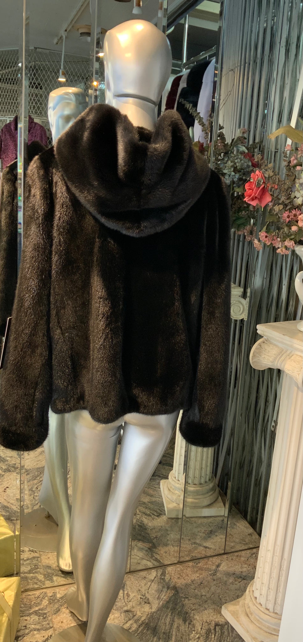 Classic Black Ranch Mink Fur Jacket with double fur hood.